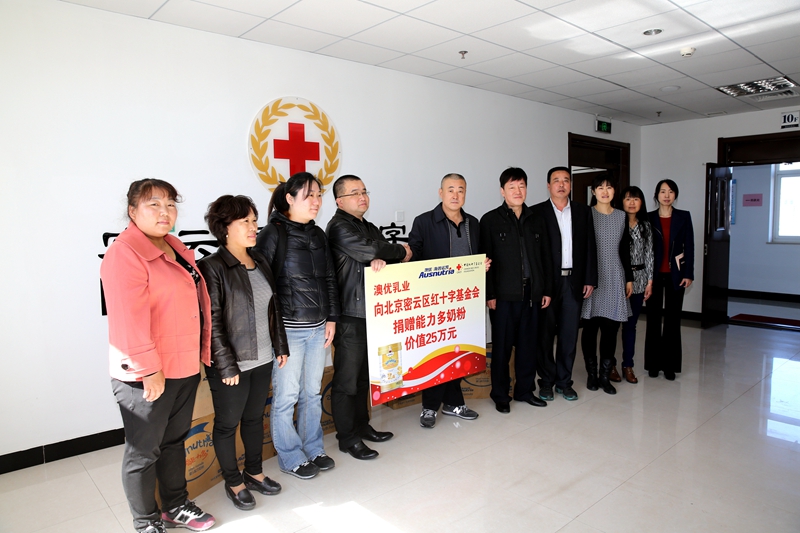 4月16日上午,澳优乳业(北京)有限公司华北区经理杨更强一行5人来到密云县红十字会,代表该企业为我县贫困弱势群体捐赠价值25万元的“能力多”奶粉97箱。
