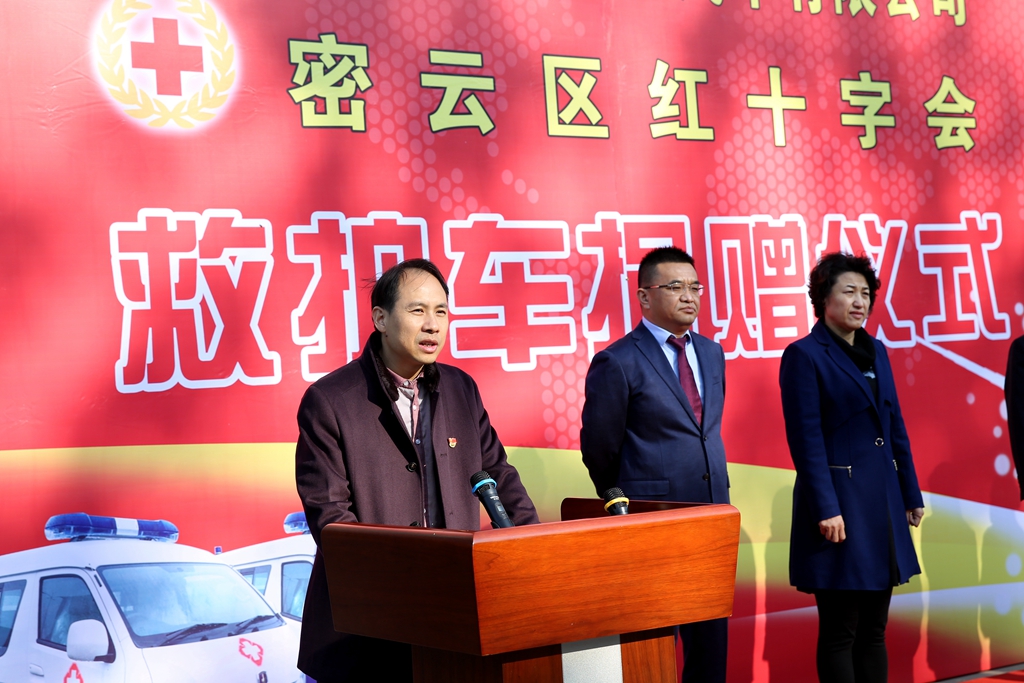 密云区副区长、区红十字会会长方建卿在讲话中表示:在党的十九大胜利召开之际,北铃汽车用实际行动践行了习总书记对企业发展的要求,用善举回馈社会,同时增强了区红十字会的救助实力。希望企业胸怀天下,履行社会责任,带动更多的善行和义举。希望区红十字会要合理使用捐赠的救护车,发挥最大的作用,用到群众最需要的地方去。