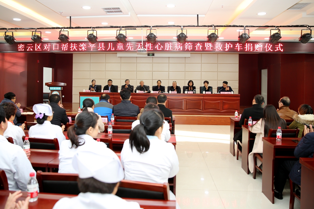 2017年11月25日上午,捐赠仪式在滦平县中医院举行,河北省承德市滦平县副县长王江平、农工党河北省委驻会副主委谷雪芬、中华民族团结进步协会医药卫生发展工作委员会会长范学智等领导出席捐赠仪式。