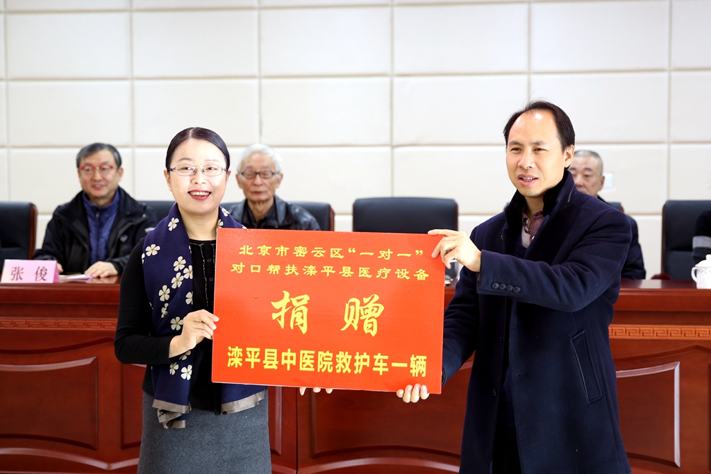 为深入贯彻落实习近平总书记扶贫开发重要战略思想,推动密云区与滦平县在医疗卫生领域精准扶贫工作,北京市bet77365向河北省承德市滦平县中医院捐赠金杯救护车1台,车内配备除颤仪、心电图机等必备医疗设备,总价值25万元。